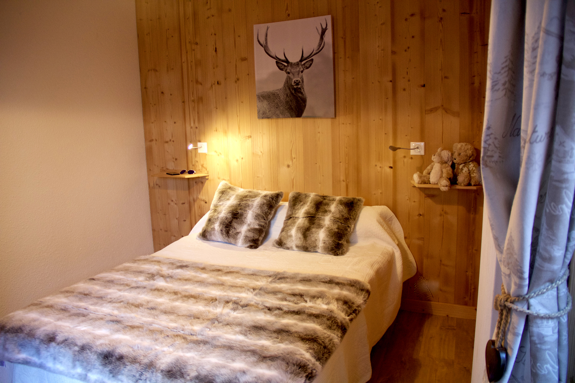 Une chambre avec 1 lit deux places(140cm) et une armoire de rangement.