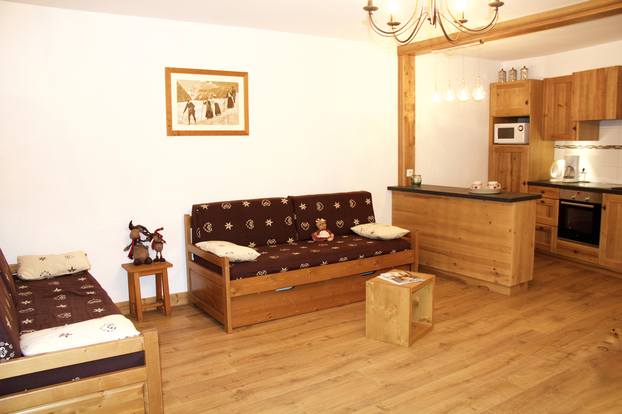 Stay with balcony access including the dining area, the 2 beds gigognes either 4 beds of 1 place or 2 beds 2 places and the cupboards, a kitchen area equipped with all the necessary utensils.